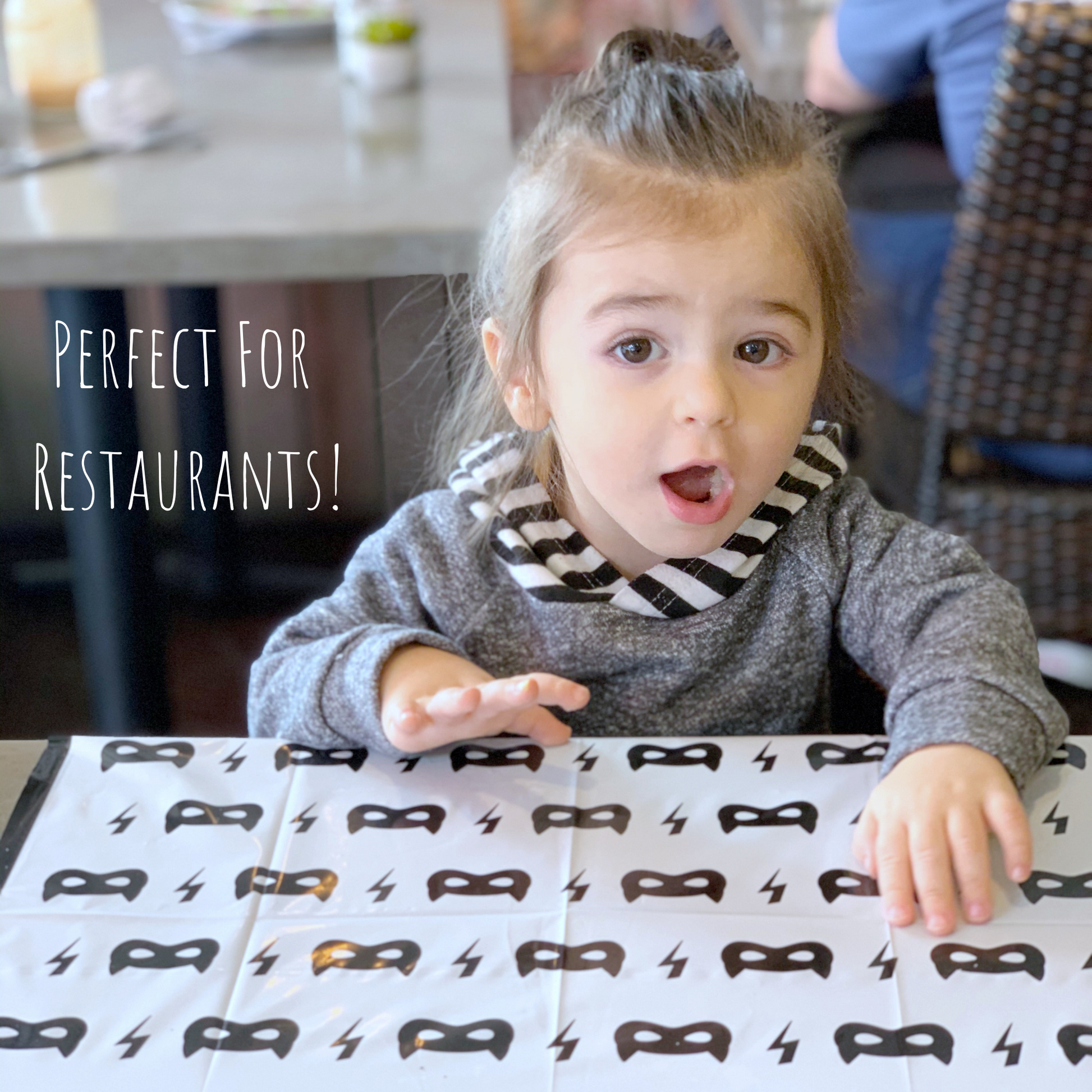 TRAVEL-FRIENDLY: Individually folded table toppers for quick grab and go. Perfect for restaurants. Custom reusable bag with zipper seal for easy storage in diaper bag or purse.