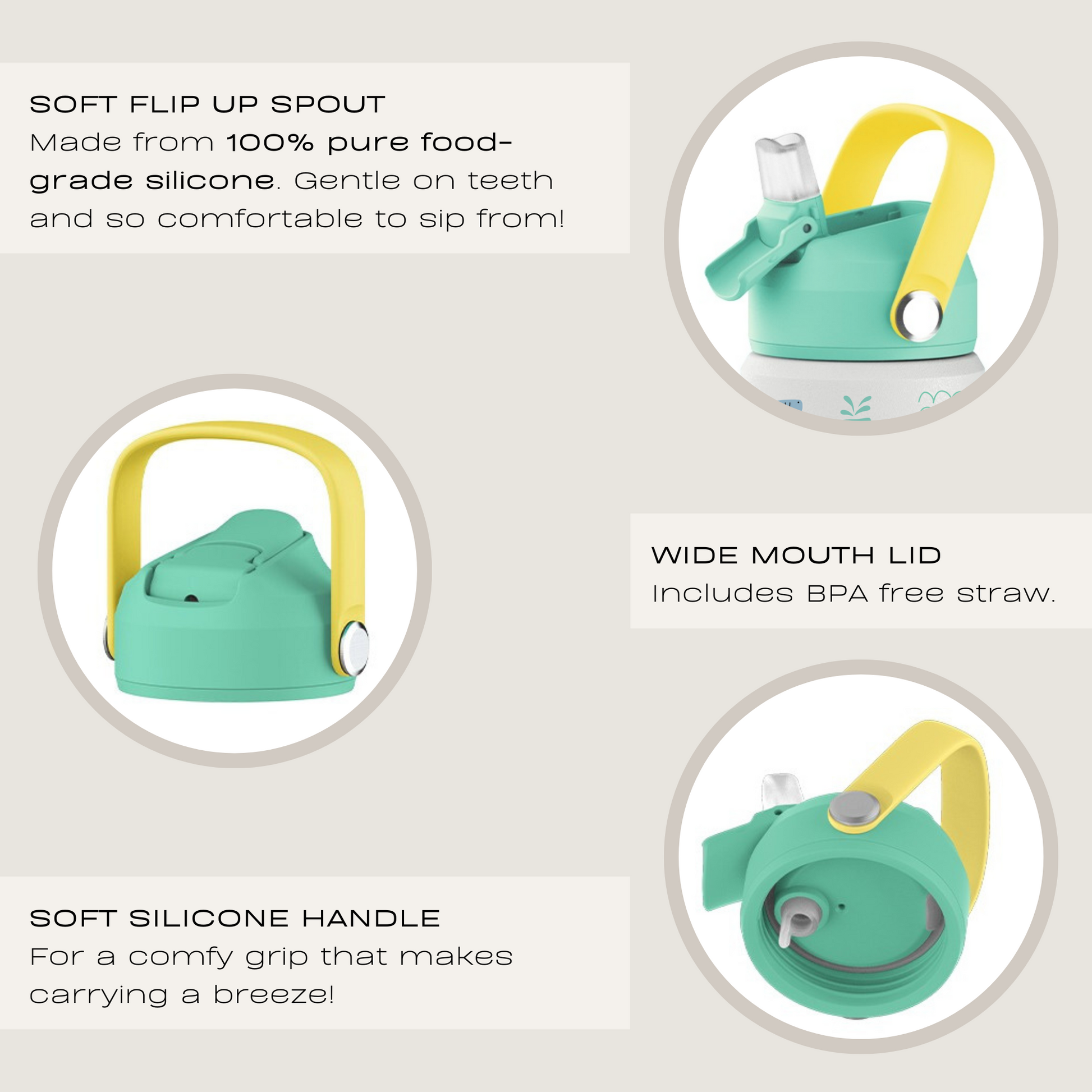 SOFT-TIP SPOUT: The wide-mouth lid includes a straw and a flip up soft spout made from food-grade silicone. It’s gentle on teeth and so comfortable to sip from!