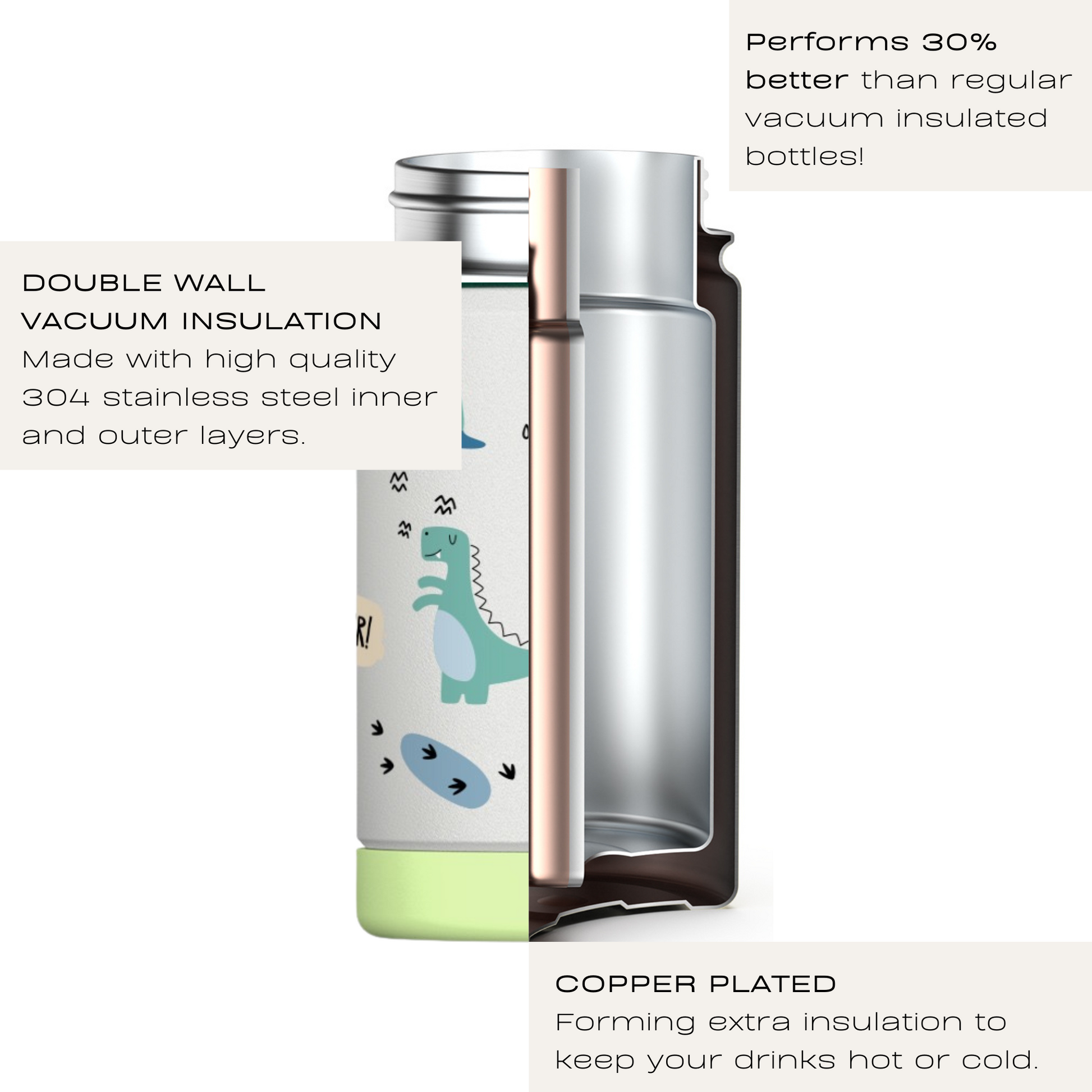 VACUUM INSULATION & COPPER PLATING: Performs 30% better than regular vacuum insulated bottles! Our water bottles are double wall stainless steel with vacuum insulation. Made with a high quality 304 stainless steel and copper plated inner layer, and a 304 stainless steel outer layer. The copper plating creates extra insulation to keep your drinks cold for 24 hours and hot for 12 hours!