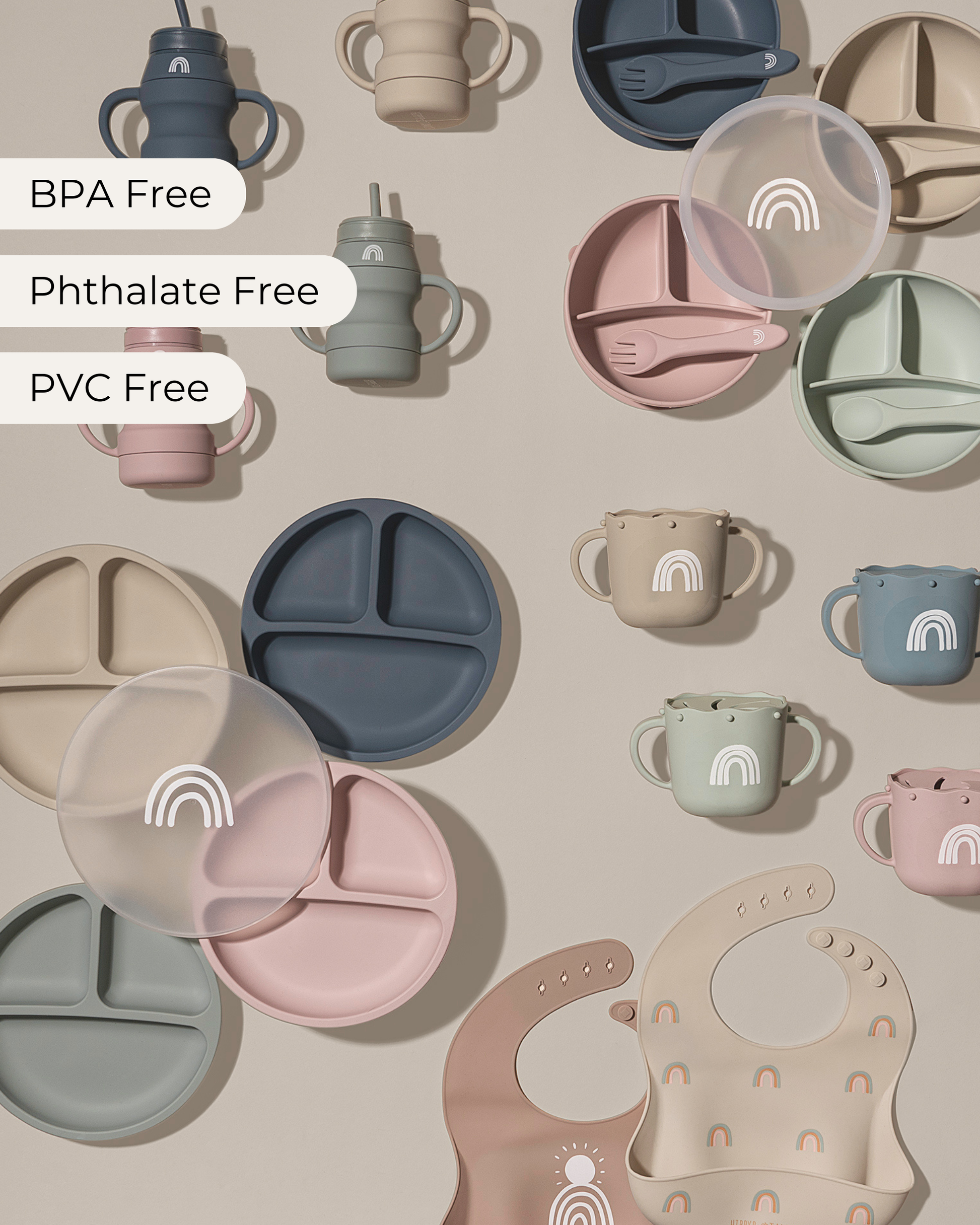 Suction Plates with Lids (Sage / Nude / Blush)