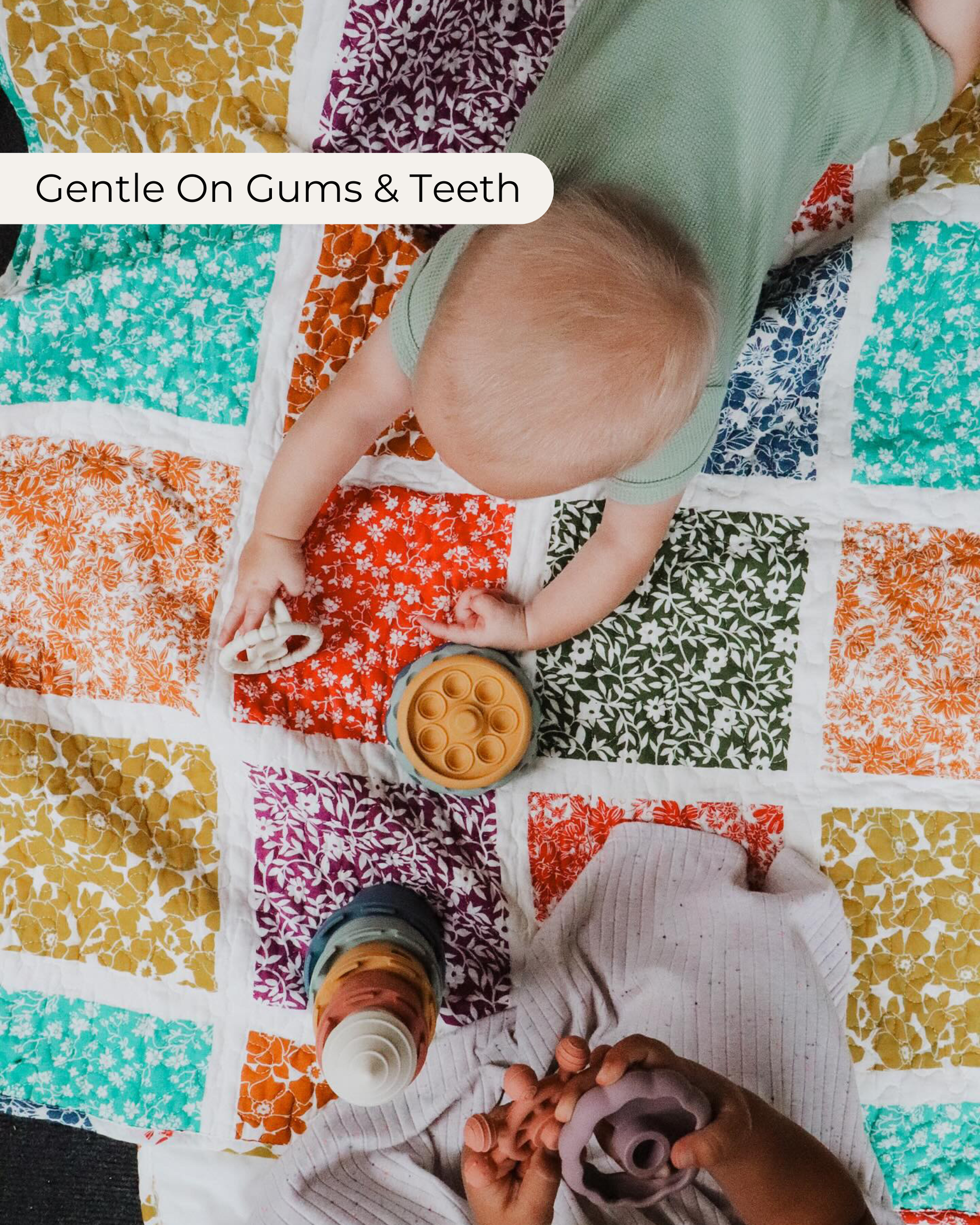 GENTLE ON GUMS & TEETH: Our stacking cups and teethers are soft & flexible, yet durable, so they’re gentle on gums and teeth. And because they’re made with high quality non-toxic silicone, they’re completely safe for your little one to chew!