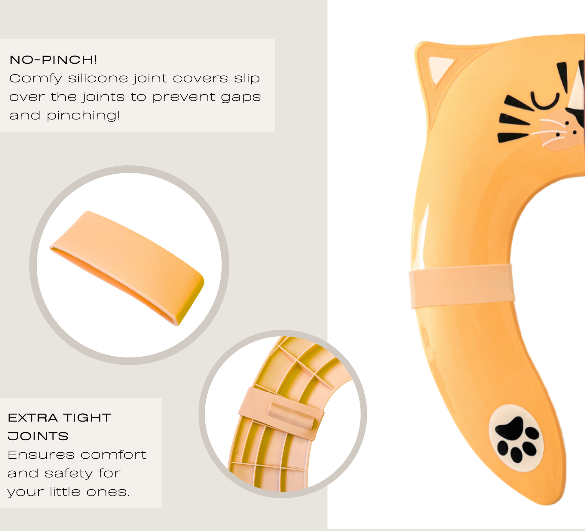 NO-PINCH: Our seats include 2 bonus silicone joint covers that slip over the folding joints to cover any gaps and prevent pinching! Designed to be removable and fit perfectly over the hinges to ensure comfort and safety for your littles. Just slide the covers down a bit before folding and storing away.