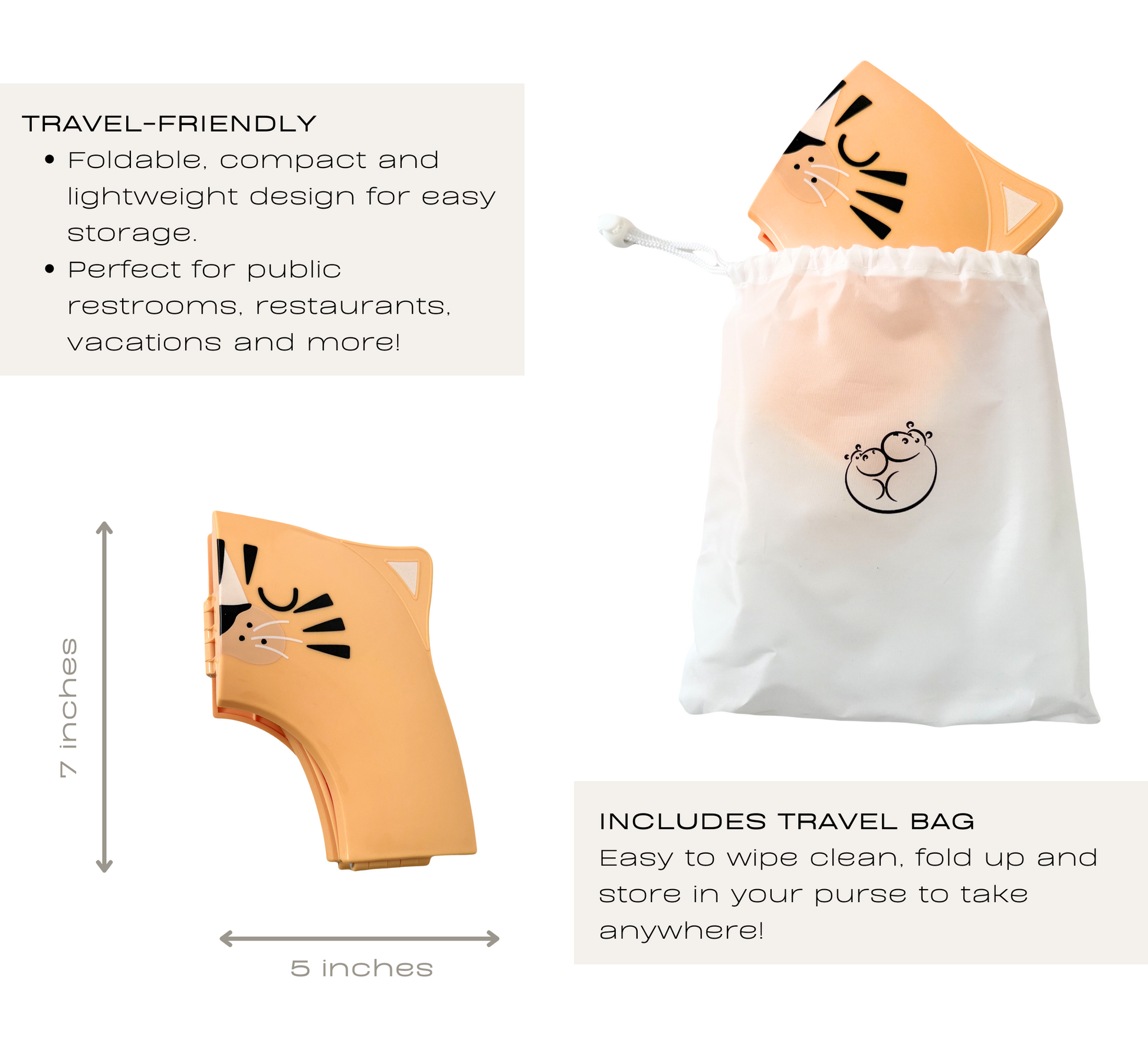 TRAVEL-FRIENDLY: Make any toilet the perfect size for your toddler! Our potty seat covers are designed to be foldable, compact and lightweight for easy storage and travel. Includes a drawstring bag to store the seat cover in your purse and take anywhere you go while keeping everything clean. Perfect for public restrooms and vacations!
